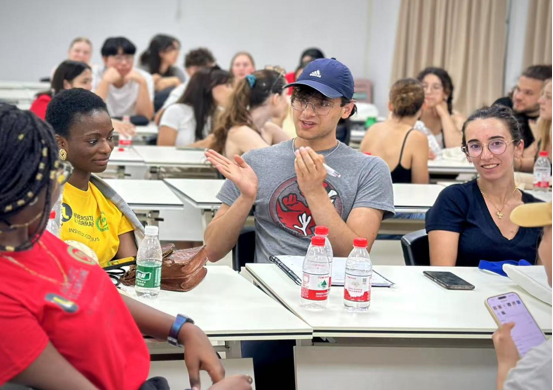 在简朴而隆重的欢迎仪式上,国际教育学院党委副书记石虎用“有朋自远方来,不亦乐乎”的古语开启致辞,强调此次交流是文明互鉴的生动实践。学院特别设计的“破冰行动”别具匠心:中外学生通过“你画我猜”的汉字游戏,在欢声笑语中消弭了语言隔阂;“方言接龙”环节让法国学生惊叹于中国语言的丰富性。志愿者们与法国学生们展开亲切交流,迅速拉近了彼此的距离,营造了友好、融洽的交流氛围,为后续活动的顺利开展奠定了坚实基础。