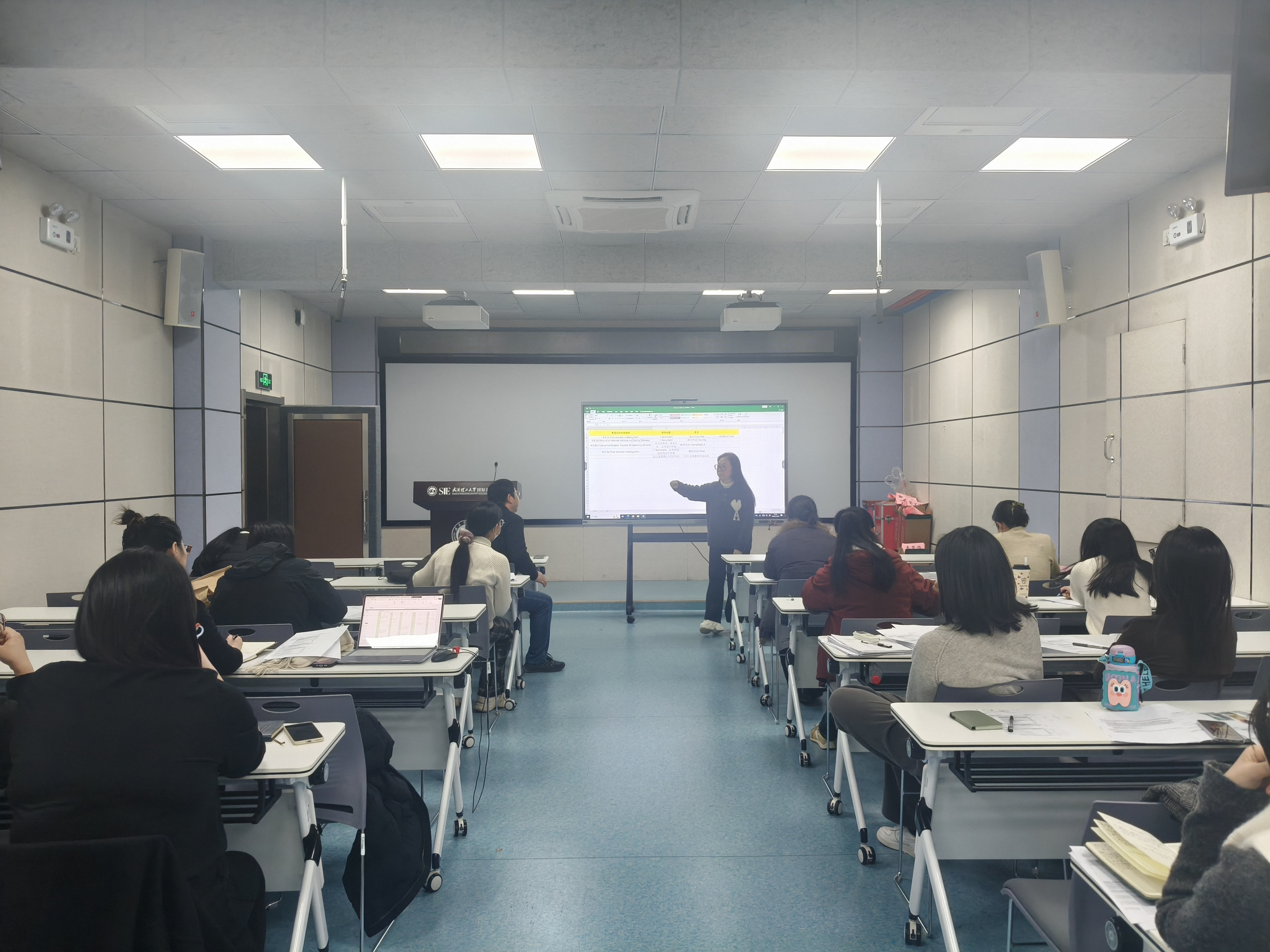 其次,张馨老师聚焦本学期所有商科课程的内部审核工作,系统讲解了内审的标准流程与关键要点。她从开课前的集中会计,课程中的反馈以及课程后的总结与评估等方面逐项说明内审检查清单的具体要求。张老师强调,高质量的内审是保障外审顺利通过的第一道防线,必须做到材料齐全、证据充分。她还现场展示了优秀内审案例,指导教师如何自查自纠,及时发现并整改潜在问题,切实提升教学管理的精细化水平。