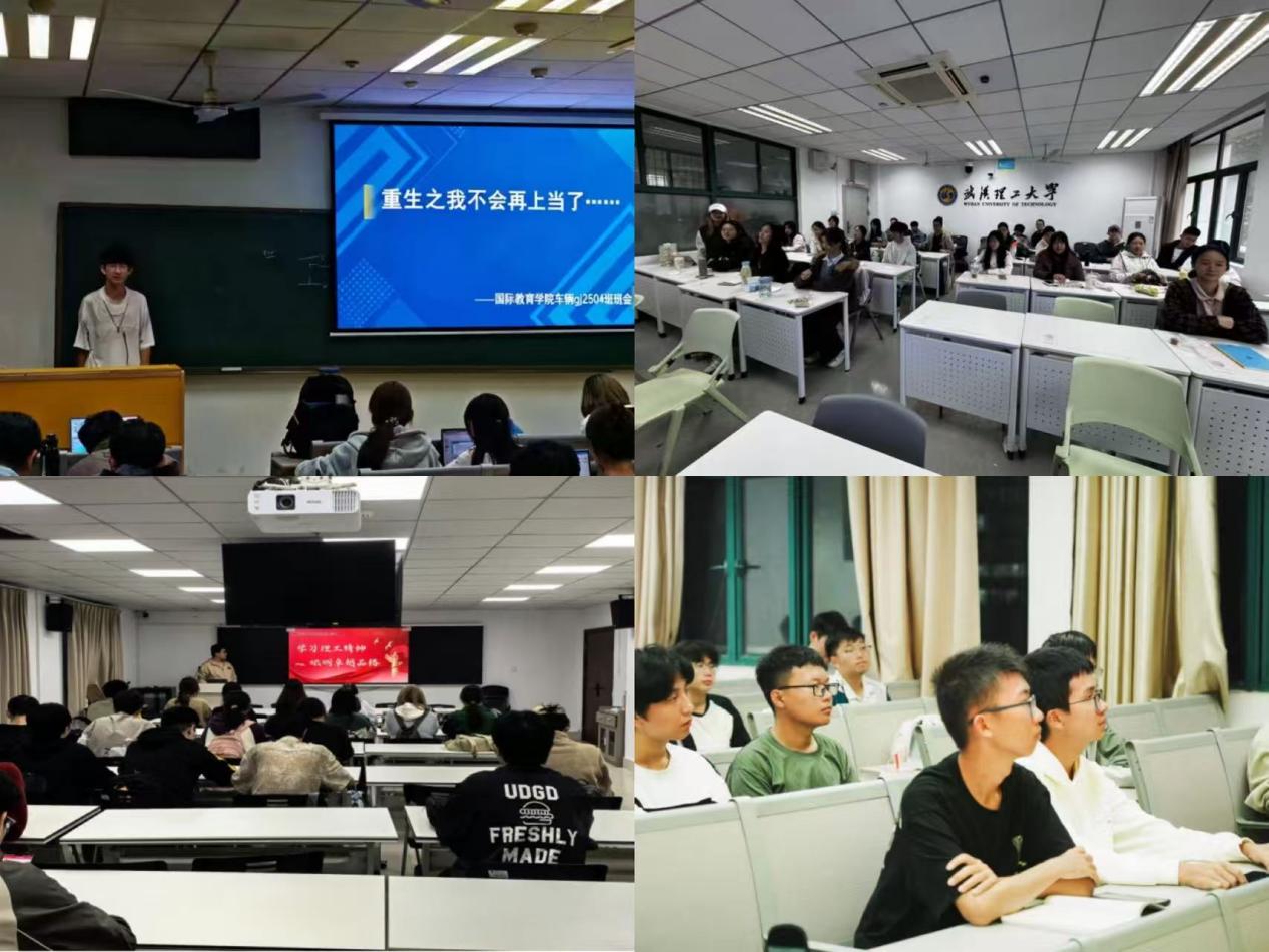 为深入贯彻落实立德树人根本任务,更好地发挥主题班会在大学生思想政治教育工作中的重要作用,促进形成优良班风学风校风,助力学生成长成才,国际教育学院于十月组织开展以 “学习理工精神,砥砺卓越品格” 与 “学风建设” 为核心的双主题班会活动,实现各年级、各专业“全覆盖”。活动执行规范有序,各班级严格落实会后材料报送要求,及时提交班会开展记录、现场照片等素材,完整呈现活动细节与育人过程。