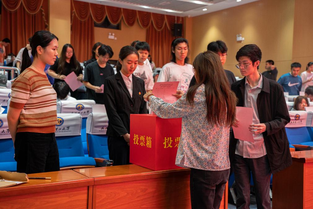 之后,会议通过差额选举的方式选举产生了武汉理工大学国际教育学院第十二届学生会主席团,并选举产生了国际教育学院参加武汉理工大学第十二次学生代表大会的学生代表人选。本次大会选举的总监票人为张卓然,监票人为许欣逸和徐婧怡。