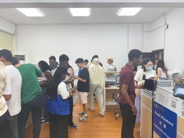 2025级国际学生的迎新工作于9月4日正式开始。在注册报到现场,留学生工作办公室和留学生招生培养中心的老师们早早准备就绪,迎接新同学的到来。2025级国际新生们在中外学生志愿者的引导与协助下,按照注册报到流程单上的流程依次办理各项手续。入住办理、入学资质核实、保险购买核查、照片采集、护照核查、缴费和注册等环节环环相扣、井然有序。为提升服务效率,国际教育学院暑期即对报到流程、住宿安排与入学教育等工作进行了专项部署。学院还与出入境管理部门和体检机构协调联动,真正实现了“一站式”服务,让繁琐的报到程序变得简单高效。