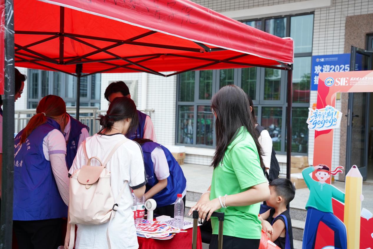 旭日初升,彩旗飘扬,校园里处处洋溢着迎接新生的热情与温暖。迎新点位及楼栋负责的老师及学院团学干部志愿者早早便整装待发迎接新生们的到来。两百多名“一对一”志愿者们也陆续到达约定地点,陪同新生抵达宿舍,领取新生大礼包、办理入住,并协助完成报到。他们用实际行动践行着“奉献、友爱、互助、进步”的志愿者服务精神,为新生入学提供了温暖周到的服务。