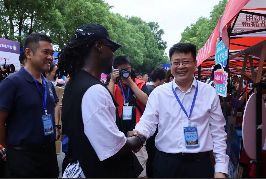 校长王发洲、副校长麦立强在相关职能部门负责人的陪同下,来到学院迎新点,详细了解新生报到情况,并向工作人员和志愿者们表达了亲切的问候。他们与现场师生亲切合影,留下美好瞬间。