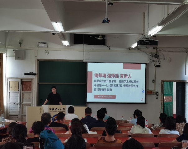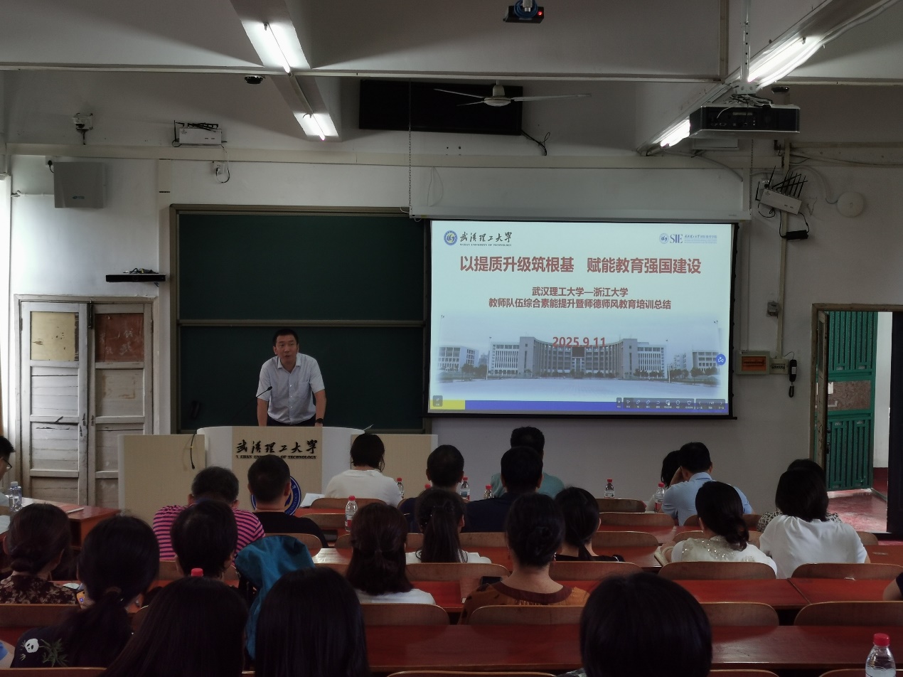 会上,学院副院长安江涛首先作了《以提质升级筑根基 赋能教育强国建设——武汉理工大学—浙江大学教师队伍综合素能提升暨师德师风教育培训总结》专题报告,他从培训总体情况、深度理论学习、现场教学实践、结业及未来展望四方面向全体教师详细汇报了学院暑期教师队伍综合素能提升暨师德师风教育培训总体情况。