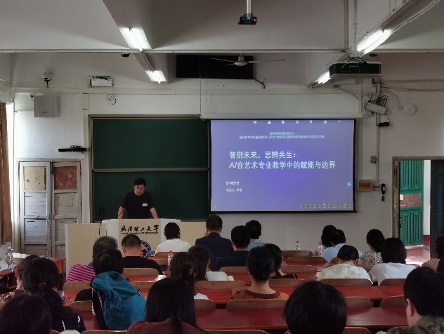 随后,暑期培训教师代表聚焦数智时代教育变革,并结合自身工作实践进行了经验分享。艺术教研室教师李侃运用三维AI技术生动地让课程内容活了起来,并以此为切入点谈到了AI技术融合的教学启发;商科教研室教师许鹏通过以《研究技巧》课程改革为例向大家介绍了如何提高学生在课程中的获得感和幸福感;艺术教研室主任张禹通过对培训的全面回顾谈到智媒时代艺术教育者的使命与转型,并强调了教育的初心和本质;商科教研室教师王小丹将红色教育与现代技术相融合,对教师教学能力的提升进行了实践与反思,并和肖潇老师共同为大家演示了三维教学模型展厅,为学院数字化教学实践提供了创新思路。