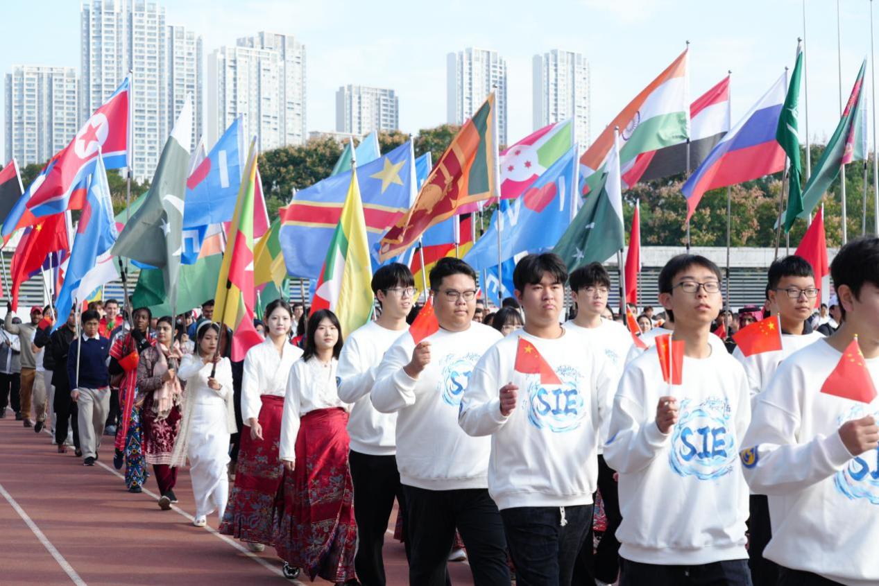 10月24日上午,雨后初晴,彩旗飘扬,方阵开场,气势难挡。运动会开幕式上,国际教育学院的方阵聚集了各国学子,绘制了一幅民族自信与文化交流的美丽画卷。铿锵有力的脚步、神采飞扬的笑脸、坚韧不拔的眼神……少年们正迈向又一次受益匪浅的成长。