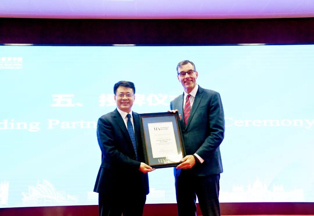 开幕式现场还举行了合作授牌仪式与奖学金颁奖仪式。英国东安格利亚大学、德蒙福特大学、朴茨茅斯大学、肯特大学依次为武汉理工大学授牌,武汉理工大学副校长麦立强、国际交流与合作处副处长陈斐、国际教育学院党委书记赵海信代表学校接牌,标志着校际合作迈入新阶段。