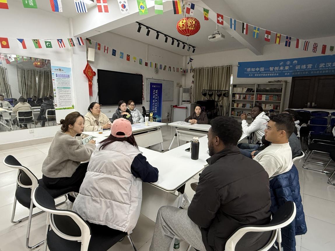 新学期成长服务方面,学院与学生干部共同研讨了国际学生专属学术与文化活动方案:一是计划推出 “博士伴学” 讲座,邀请博士研究生聚焦本科、硕士留学生的课程难点,开展专业核心课答疑与学术方法指导;二是策划文化体验系列活动,组织国际学生走访湖北省博物馆、武汉美术馆等场馆,搭配双语讲解与互动环节,助力国际学生感知中国文化魅力;三是筹备跨文化交流沙龙,结合传统节日搭建中外学生交流平台,促进文化互鉴与友谊联结;四是举办“小而美”宿舍交流活动,学生干部组织在寝学生开展象棋、电子游戏、乒乓球、电影等娱乐活动,丰富留校学生的校园生活。