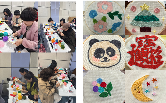 大家暂别繁忙工作,沉浸于戳戳绣创作的美好中,在一针一线间舒缓压力,收获了沉浸式创作的满足与成就感。历经一个多小时的用心制作,一幅幅精致的戳戳绣作品相继完成,大家互相展示自己的作品,脸上洋溢着自豪与喜悦,定格节日美好瞬间。