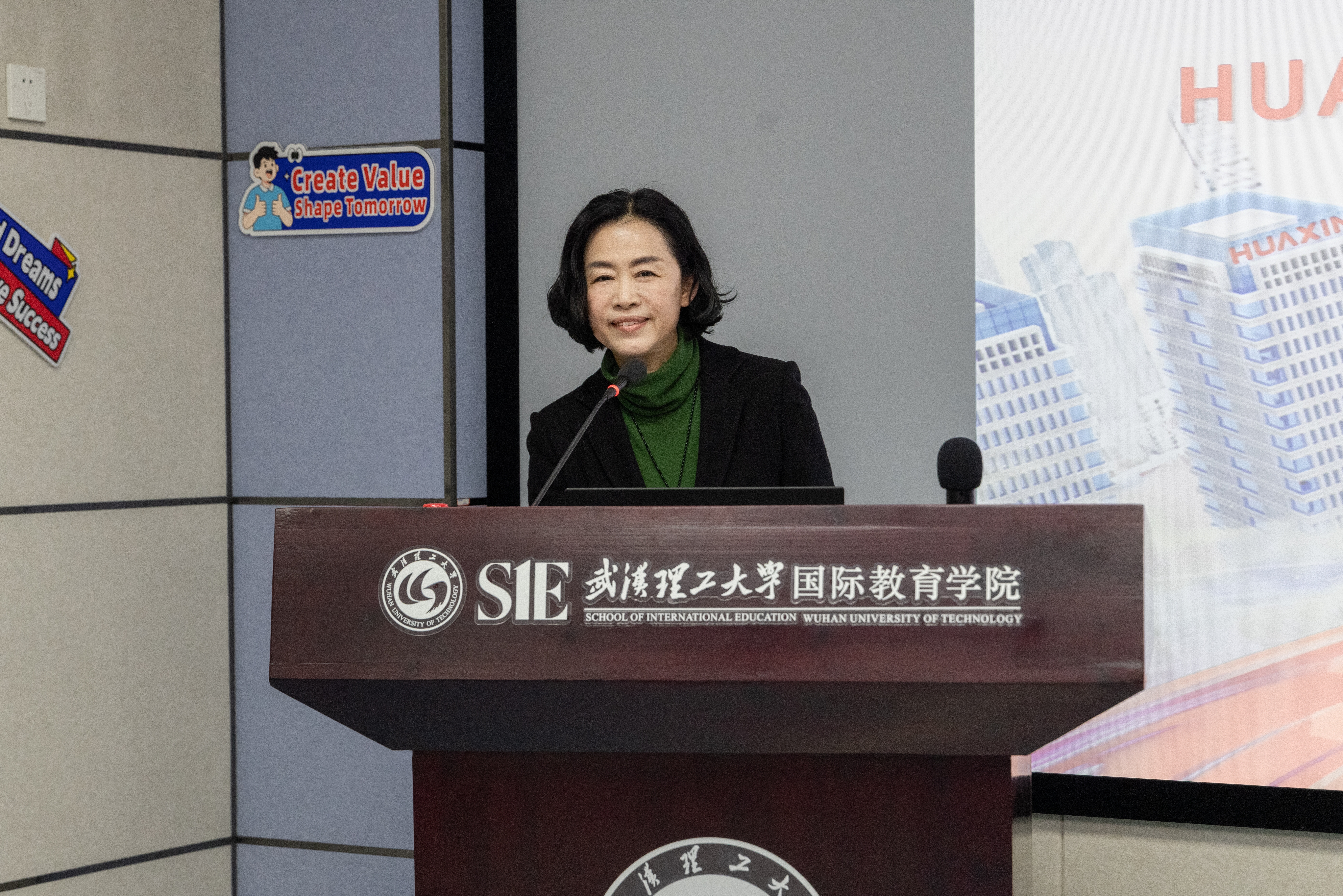 黄红梅院长在致辞中表示,华新与武汉理工渊源深厚,校友李叶青总裁、王加军副总裁等正是双方人才共育的生动见证。两周前,学院与华新达成共识,共同推进“国际化人才”培养计划,今天再次携手,为国际学子开启通往全球化职场的直通桥梁。她指出,当前华新海外业务蓬勃发展,正处于吸纳人才的黄金机遇期,期待同学们依托华新海外平台,展现个人价值,实现职业梦想。