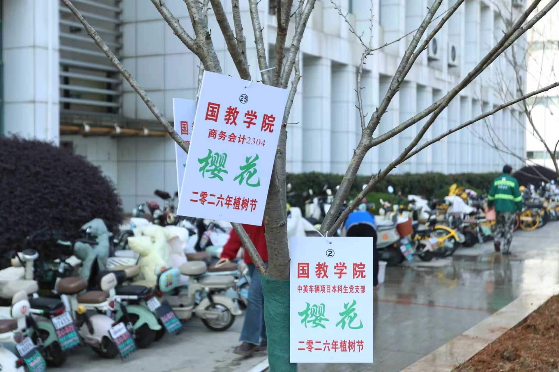 大家为亲手栽种的樱花树挂上专属标识牌,将对母校的眷恋、对未来的期许,都倾注在这株株新生的苗木中。