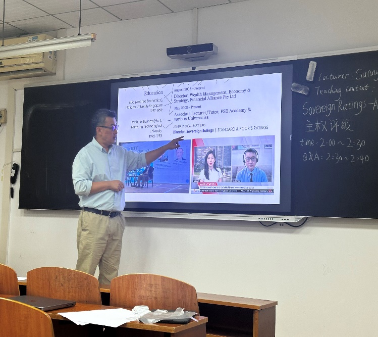 本次教学中,Sani教授凭借其国际视野与在标普全球信用评级公司的丰富工作经验,系统讲解经济信用评级理论、标准及其对全球金融市场的影响。他通过生动的借贷案例,深入浅出地揭示了国际评级机构的工作机制与评级意义,并强调无偏差评级对国家宏观经济发展的重要性。肖潇老师通过列举生活案例对专业术语进行了具象化解释,成功激发学生深入思考与探讨。