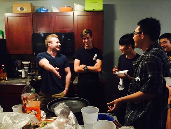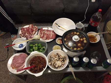 不过,上面这些都是针对不会做饭的同学,会做饭的同学,买好锅碗瓢盆,自己在家做饭菜就可以了。基本上公寓里都有烤箱,用烤箱烤烤鸡翅鸡腿,不仅简单又节省时间,而且合理放好调料以后,烤出来的还特别好吃,烤箱使用方法很简单,不过也要非常注意,像我就碰到过烤食物的时候不小心把烤箱的自动清洁启动,结果搞得整个屋子都是烟。在外面,特别是冬天下大雪时候,叫上几个同学,在屋里搞一锅火锅,和同学聊聊天,涮一涮肉,是不能再舒服的事情啦!不过还是要提醒一下,喜欢做饭是好事,但一定得注意,像我有一次用微波炉热馒头就不小心因为热的时间过久而把盛放馒头的盒子给烧穿,导致整个房间烟雾迷漫。