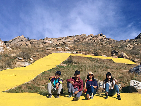 闲暇之余也会和三五好友一块儿在UCR周边游览,最有意思的莫过于校园正对面的C山,这儿的山都由字母编号,碰巧的是从校园图书馆正面看过去,就是一个明晃晃的C。山不高但路途陡峭摩擦力小,不易着力,对于很少爬山的我们,上山下山很吃了点苦头。不到C山非好汉,黄昏时分登山,等夜幕降临之时,那风景美不胜收。